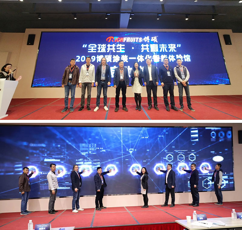 2019年12月5日,“全球共生,共贏未來”2019博碩涂裝一體化智能體驗館慶典在博碩涂裝一體化智能體驗館正式啟動。順德區(qū)科技局副局長吳慶強、全國工商聯(lián)家具裝飾商會執(zhí)行會長張傳喜、廣東省定制家居協(xié)會會長索菲亞副總裁張挺等80多名設備與涂料圈兒的嘉賓們共同出席此次活動。