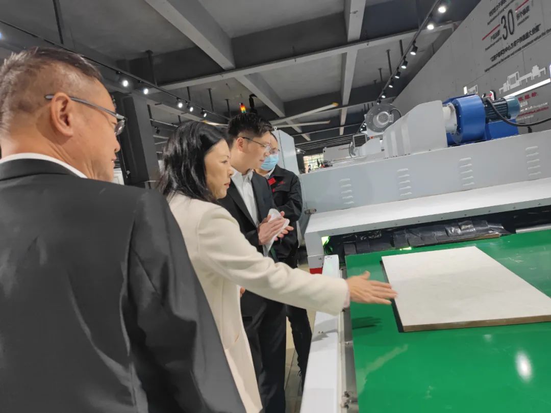 劉書(shū)記一行首先對(duì)博碩的廠房外墻、生產(chǎn)車(chē)間、涂裝一體化智能體驗(yàn)館進(jìn)行了視察。博碩廠房外墻是博碩自主研發(fā)的涂裝工藝及設(shè)備應(yīng)用在硅酸鈣板上,制作成的保溫裝飾一體板,不僅實(shí)現(xiàn)了仿各種花崗巖的圖案,還達(dá)到環(huán)保、節(jié)能的效果,推動(dòng)了“中國(guó)裝配式建筑”的發(fā)展,實(shí)現(xiàn)了住宅產(chǎn)業(yè)化,再進(jìn)入生產(chǎn)車(chē)間,更加深入了解博碩涂裝的整體體系以及戰(zhàn)略布局。