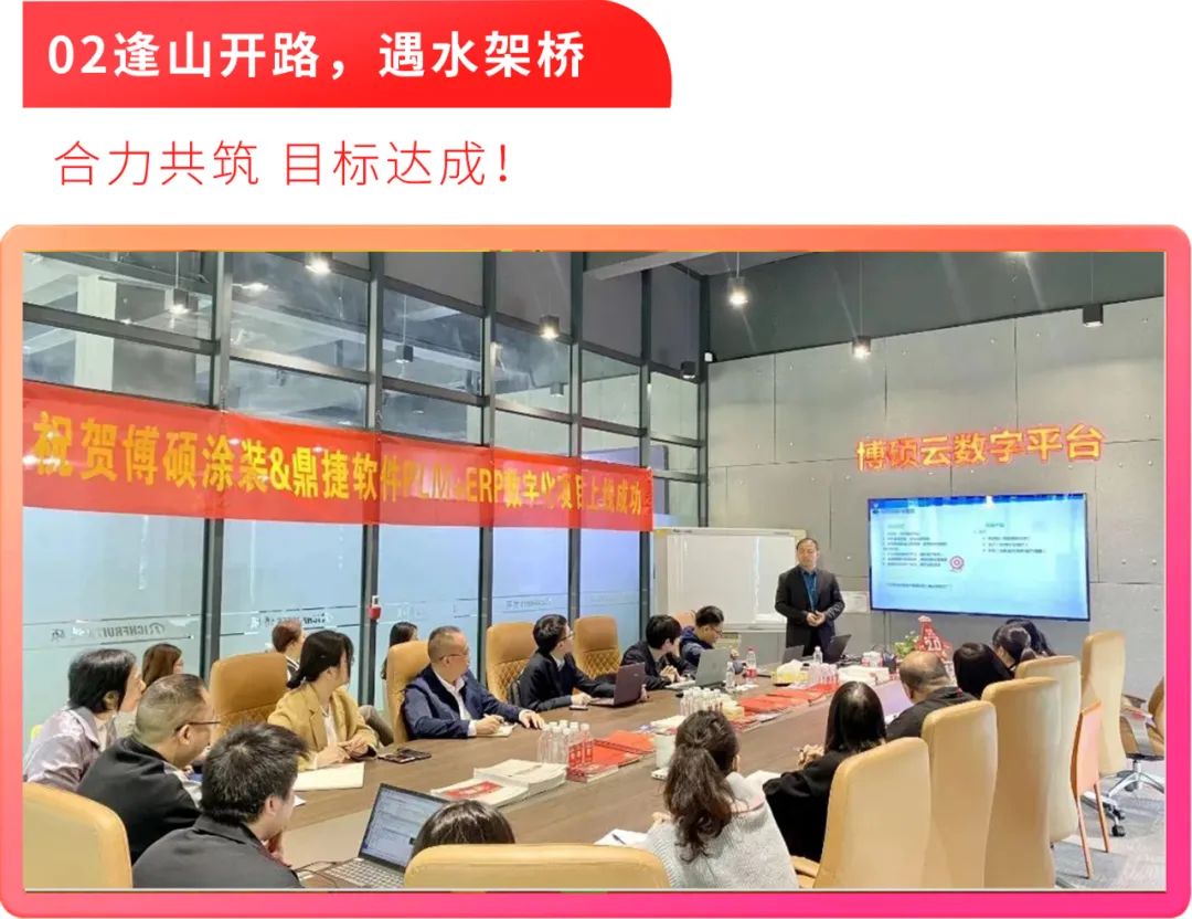 目前好消息已經(jīng)傳來,歷經(jīng)7個月的調(diào)研梳理及上線部署,合作雙方的辛苦付出獲得了階段性成果,博碩涂裝信息化項目迎來里程碑式意義的時刻!近期上線大會在雙方的高度重視下成功舉辦。廣東博碩涂裝技術(shù)有限公司董事長謝君、信息部經(jīng)理馮聲醒,鼎捷軟件項目經(jīng)理畢子龍等雙方團隊出席會議。會議的召開標志著經(jīng)過全體項目組成員的一致努力下,正式將“啟動”變?yōu)椤?/span>上線”。