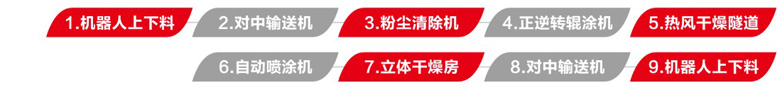 預輥實色乳膠中涂,再噴涂真石漆沙粒效果,避免了透底的現(xiàn)象。后段配平鋪式立體干燥房,避免了厚噴漆膜流掛的現(xiàn)象,同時實現(xiàn)油漆快速干燥,將能耗降至最優(yōu)。