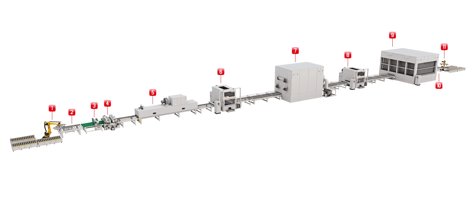 預(yù)輥實(shí)色水性中涂,再通過(guò)兩次水包水薄噴待干的工藝配合,一來(lái)將色差降至最低,二來(lái)避免底層漆膜水份透不來(lái)形成假干的現(xiàn)象。后段配平鋪式立體干燥房,避免了厚噴漆膜流掛的現(xiàn)象,同時(shí)實(shí)現(xiàn)油漆快速干燥,將能耗降至最優(yōu)。