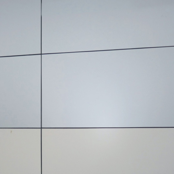 以中高密度纖維水性板/硅酸鈣板為基材,通過多層UV底漆輥涂和砂光,以及氟碳中涂和面漆輥涂,達(dá)到實色或銀粉氟碳漆的飾面效果,具有耐候性、耐熱性、耐低溫性、耐化學(xué)藥品性,并且具有良好的自潔性能。