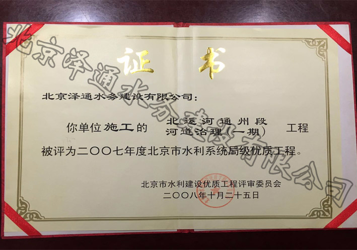 水利系統(tǒng)局級(jí)優(yōu)質(zhì)工程