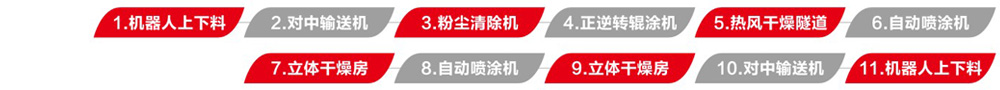 預(yù)輥實(shí)色水性中涂,再通過兩次水包水薄噴待干的工藝配合,一來將色差降至最低,二來避免底層漆膜水份透不來形成假干的現(xiàn)象。后段配平鋪式立體干燥房,避免了厚噴漆膜流掛的現(xiàn)象,同時(shí)實(shí)現(xiàn)油漆快速干燥,將能耗降至最優(yōu)。