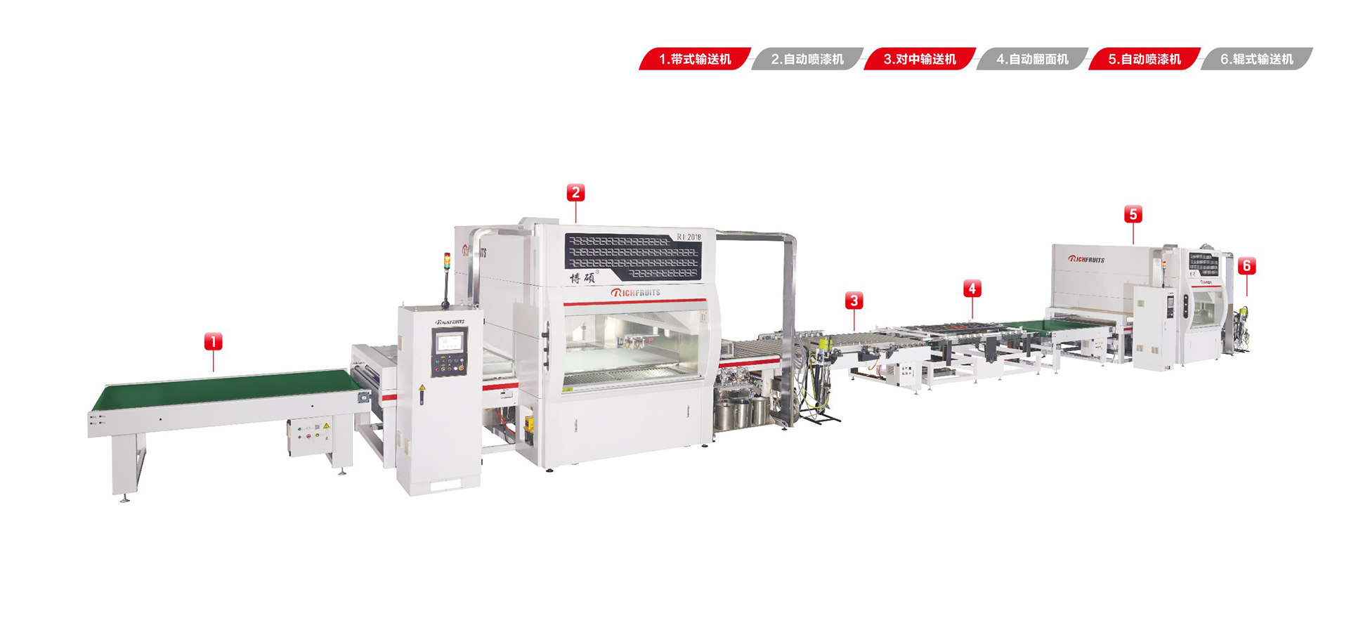 適用于板式家具、實木門、櫥柜門、工藝品、裝飾板、硅酸鈣板、玻鎂板、水泥纖維板的板式加工件的平面和四個側(cè)邊進行高質(zhì)量、大批量連續(xù)噴漆。