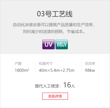 生產(chǎn)產(chǎn)能 UV底漆噴涂線(兩條):3600m2/8h (生產(chǎn)員3人/線)