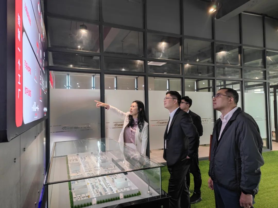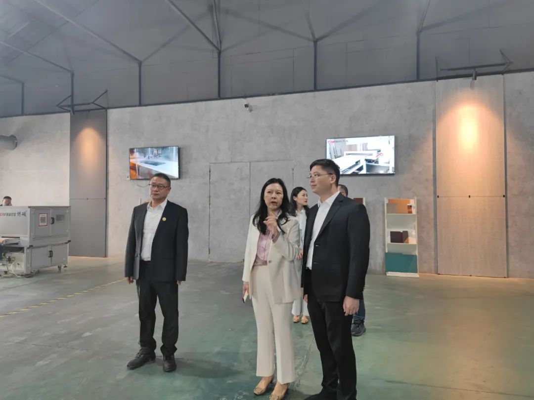 劉書(shū)記一行首先對(duì)博碩的廠房外墻、生產(chǎn)車(chē)間、涂裝一體化智能體驗(yàn)館進(jìn)行了視察。博碩廠房外墻是博碩自主研發(fā)的涂裝工藝及設(shè)備應(yīng)用在硅酸鈣板上,制作成的保溫裝飾一體板,不僅實(shí)現(xiàn)了仿各種花崗巖的圖案,還達(dá)到環(huán)保、節(jié)能的效果,推動(dòng)了“中國(guó)裝配式建筑”的發(fā)展,實(shí)現(xiàn)了住宅產(chǎn)業(yè)化,再進(jìn)入生產(chǎn)車(chē)間,更加深入了解博碩涂裝的整體體系以及戰(zhàn)略布局。