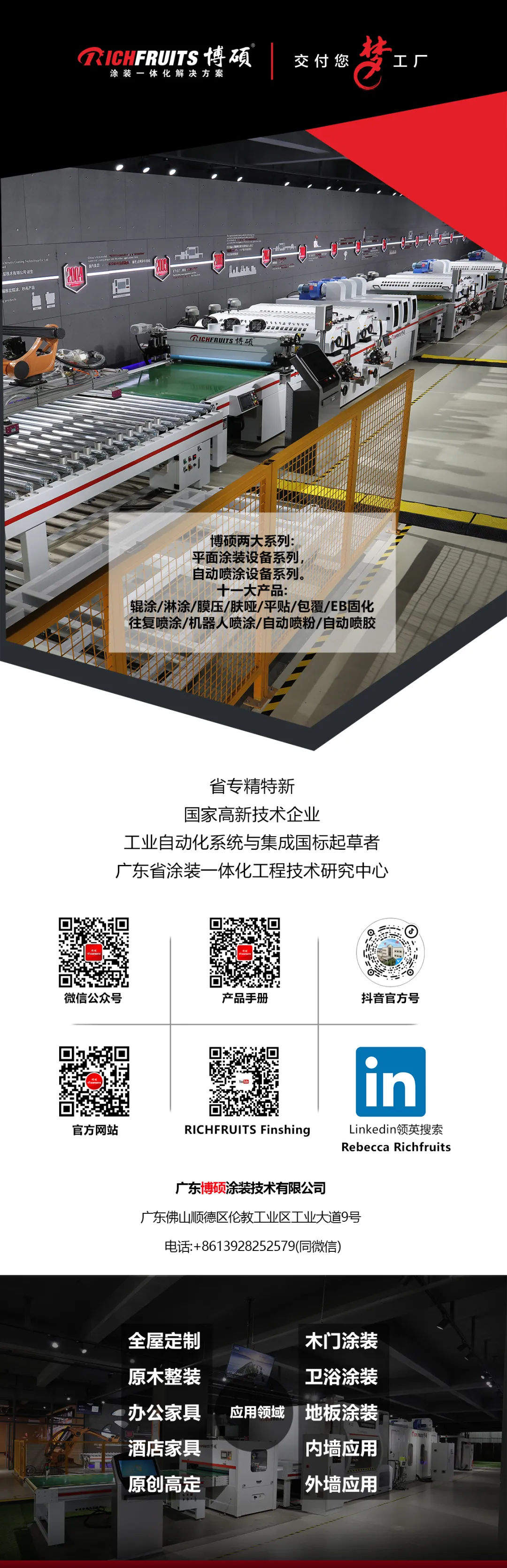 博碩是一家21年的涂裝設備制造商,從成立之初就聚焦在大家居和大建材領域,除了我們剛才的故事主人公是櫥柜企業(yè)以外,我們的客戶還有:全屋定制、木門、有機無機板材企業(yè)、裝飾類材料企業(yè)。像現(xiàn)在市場上流行的準分子膚感板(為了減低企業(yè)成本,博碩研發(fā)了不需要氮氣技術路線,申請了PCT專利,推動了準分子技術的廣泛普及應用)、EB板,意式涂裝木皮板,這些表面效果無論是板還是膜都是通過我們的涂裝設備加工完成的,概括一句博碩是干什么的?就是在大家居和大建材上《專做表面文章》。