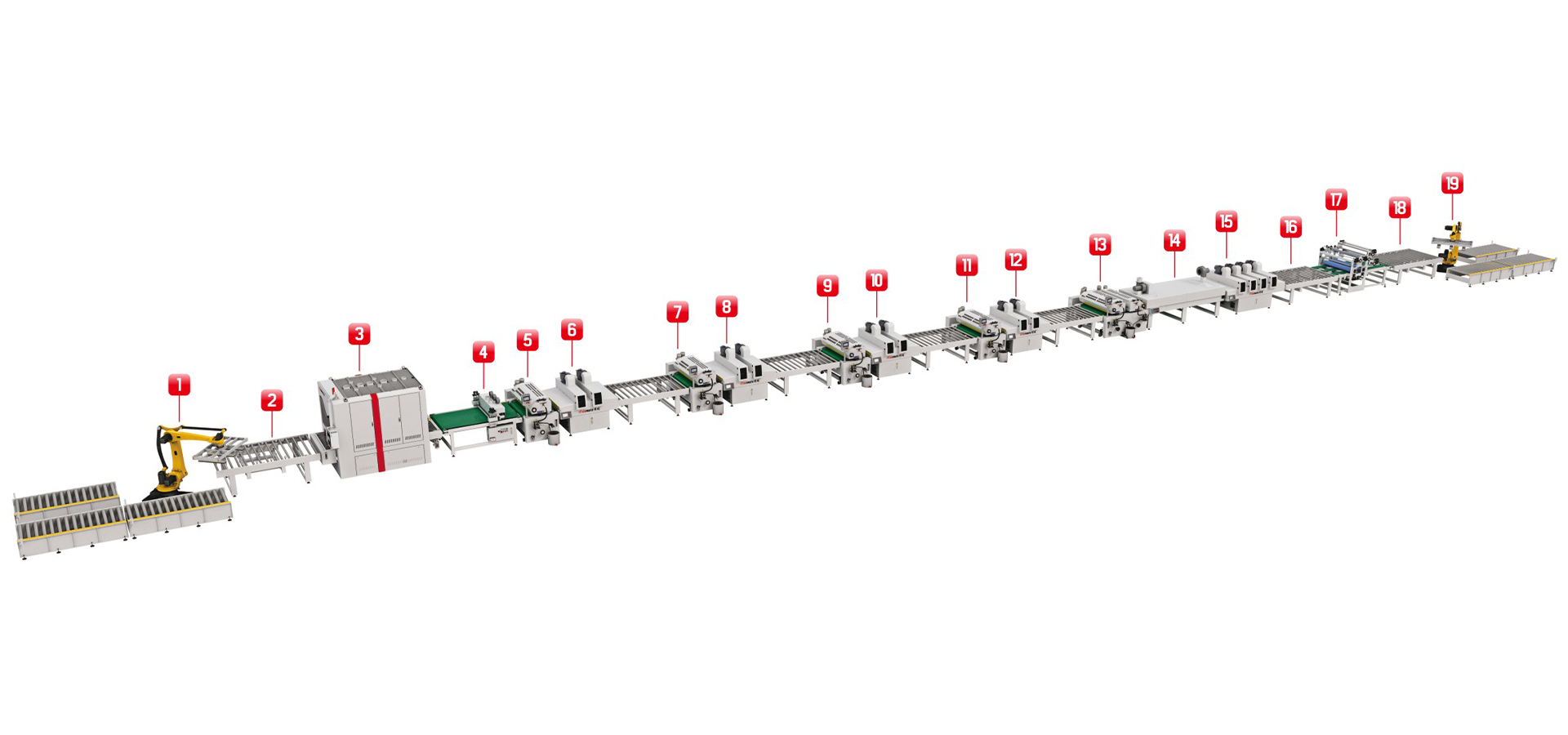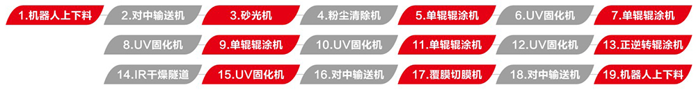 實色UV板輥涂,兼容醫(yī)療板和抗菌板的產(chǎn)品種類,采用五面輥涂的工藝實現(xiàn)薄涂多道的的方式,避免深色漆面干不透的現(xiàn)象。配置智控系統(tǒng),實現(xiàn)一鍵快速換色的功能。