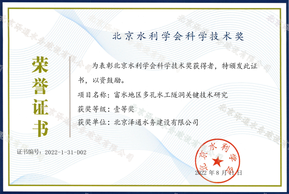 北京水利學會科學技術獎