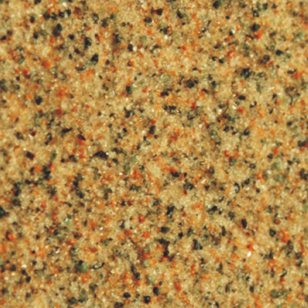 以中高密度纖維水性板/硅酸板為基材,通過(guò)砂光和多層水性漆輥涂,以及真石漆/水包砂噴涂,達(dá)到仿花崗巖的飾面效果,最后噴涂氟碳罩面,具有良好的自潔性能。真石漆/水包砂噴涂立體浮雕質(zhì)感面的效果,成本較低,并且具有良好的高低溫效果,非常適用于中低端墻面的裝飾要求。